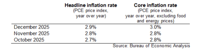 - Higher inflation in December. Last week, we learned that inflation accelerated in December. The personal consumption expenditures (PCE) price index, which is the Federal Reserve (Fed)’s preferred inflation measure, was delayed due to the government shutdown.